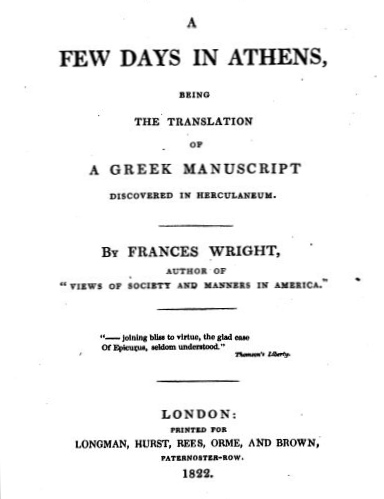 The Complete Text Of A Dialogue By Frances Wright On Epicurus and His Philosophy